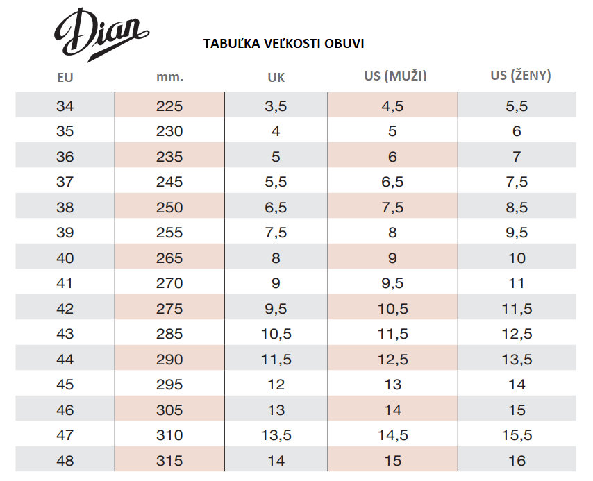 - - Veľkostný rozsah: 34 – 47
