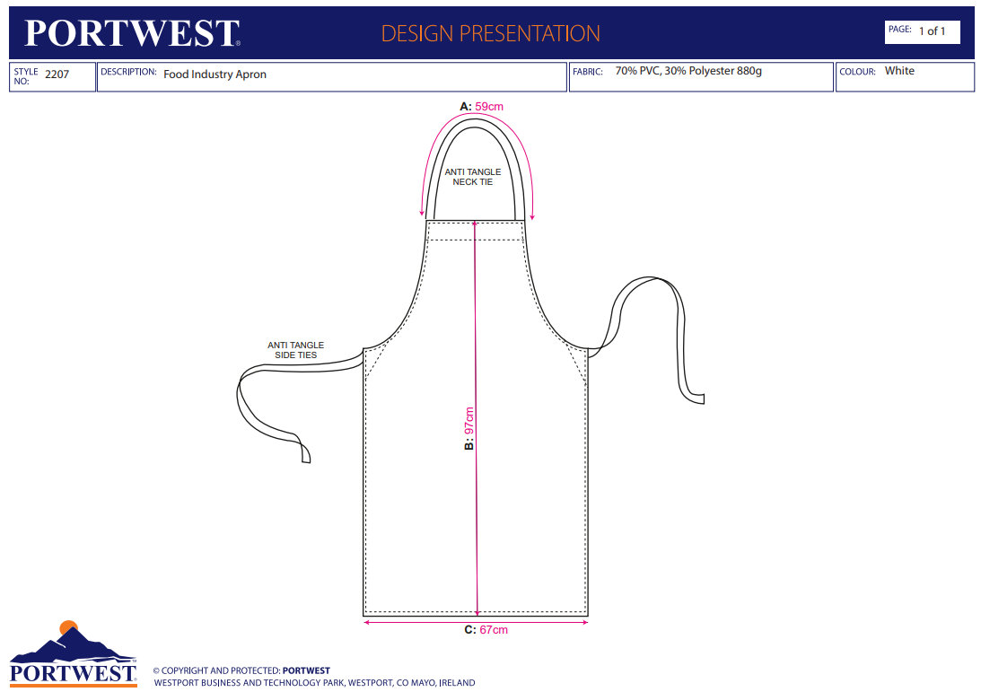 Zástera pre potravinársky priemysel je 100% nepremokavá a ponúka aj vynikajúcu ochranu pre rôzne prostredia. S povrchovou úpravou s chemickou ochranou táto odolná zásterka chráni pred kyselinami, zásadami a olejmi. Materiál: 70% PVC, 30% Polyester- - Prémiová tkanina odolná voči vode