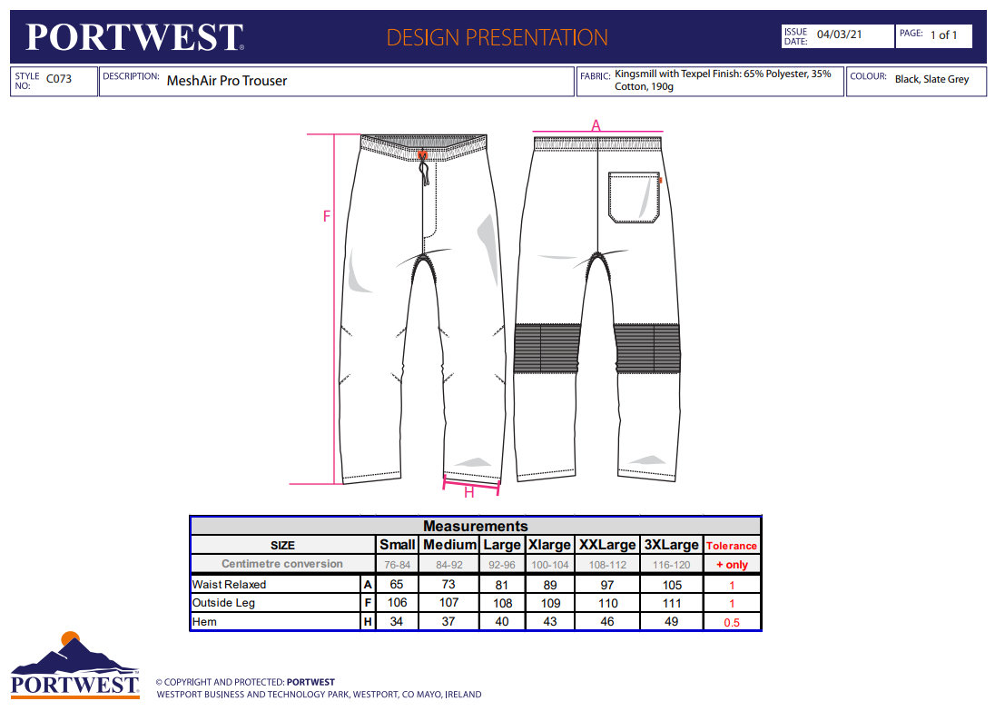 Portwest C073 MeshAir Pro Kuchárske nohavice