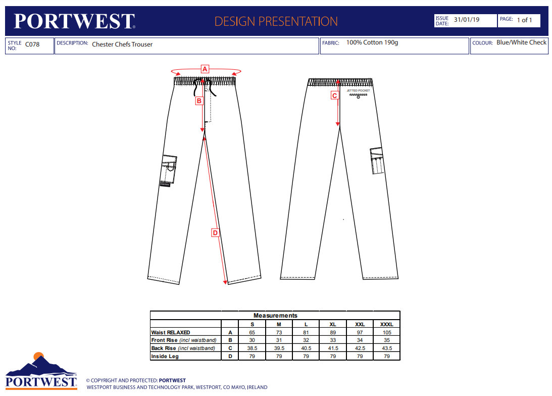 Portwest C078 Chester Kuchárske nohavice