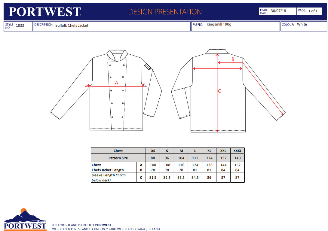 Portwest C833 Suffolk Kuchársky rondon