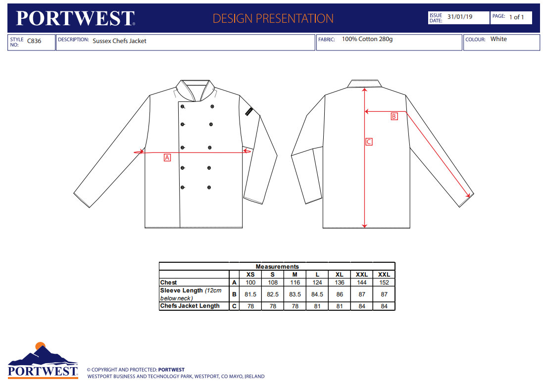 Portwest C836 Sussex Kuchársky rondon