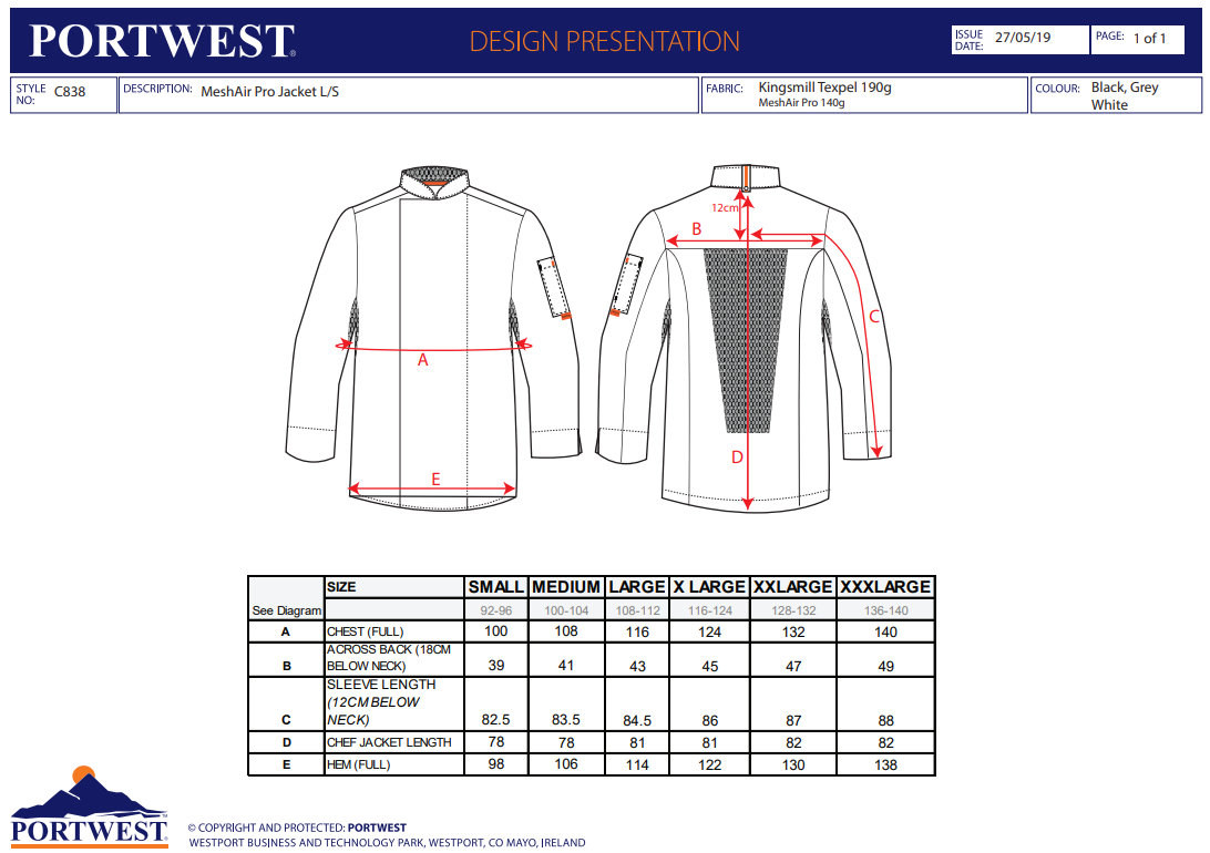 Ľahký a moderný kuchársky rondon Portwest C838 MeshAir Pro s dlhým rukávom ponúka štíhly strih a ergonomický dizajn pre maximálne pohodlie v kuchyni. Využíva odolnú keprovú tkaninu Kingsmill polybavlna s vodeodolnou úpravou Texpel™ Splash Eco bez obsahu PFAS, ktorá odpudzuje vodu a škvrny. Pre vynikajúcu priedušnosť je rondon vybavený veľkými panelmi MeshAir Pro na zadnej strane a v klinovom podpazuší, čo zabezpečuje optimálnu ventiláciu aj v horúcom prostredí. Elegantný vzhľad dopĺňajú francúzske manžety a skryté predné gombičky pre ľahký prístup. Praktické detaily zahŕňajú vrecko na rukáve a vnútorné vrecko na bezpečné uloženie drobností, ako aj držiak na zásteru na krku. Priedušný a pohodlný kuchársky rondon je ideálny pre kuchárov a pracovníkov v potravinárskom priemysle, ktorí vyžadujú štýlový a funkčný pracovný odev s jednoduchou údržbou (možno prať v práčke pri 60 °C). Produkt má certifikát OEKO-TEX®. Tento kuchársky rondon Portwest MeshAir Pro je skvelou voľbou pre každého profesionála, ktorý hľadá pohodlný, priedušný a štýlový pracovný odev do kuchyne.- Kľúčové vlastnosti: