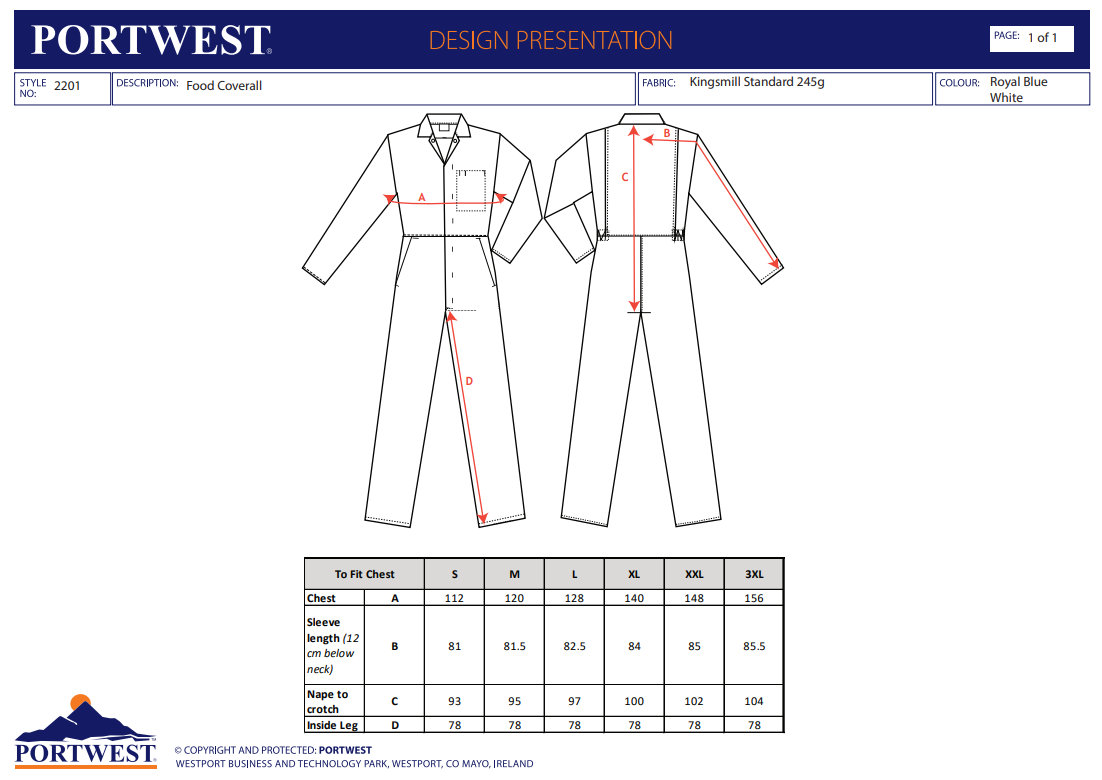 Portwest 2201 Potravinárska kombinéza