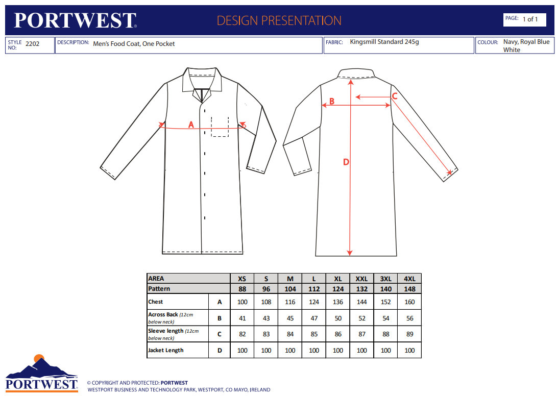 Pánsky plášť Portwest je ideálny pre prácu v potravinárskom priemysle, kde je dôležitá hygiena, pohodlie a funkčnosť. Vyrobený z kvalitnej polybavlnenej tkaniny Kingsmill, ktorá je odolná voči zmršťovaniu a má dlhú životnosť aj pri častom praní. Tento pracovný plášť má 1 vnútorné náprsné vrecko na bezpečné uloženie drobných predmetov a skryté gombíky pre jednoduché obliekanie a čistý vzhľad. Tento plášť je súčasťou kolekcie pracovného oblečenia pre potravinárstvo a je ideálny pre zamestnancov výroby, spracovania potravín či gastro prevádzok. Spoľahlivý odev pre každodenné používanie v náročnom pracovnom prostredí.