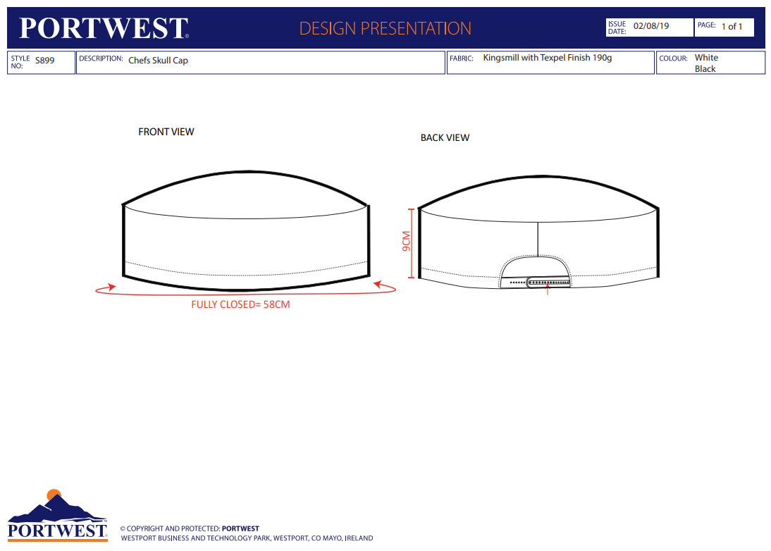 Portwest S899 Skull Kuchárska čiapka