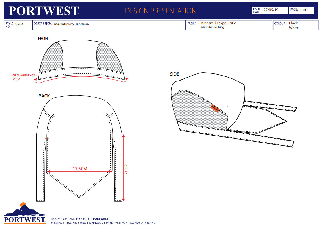 Portwest S904 MeshAir Pro Kuchárska bandana