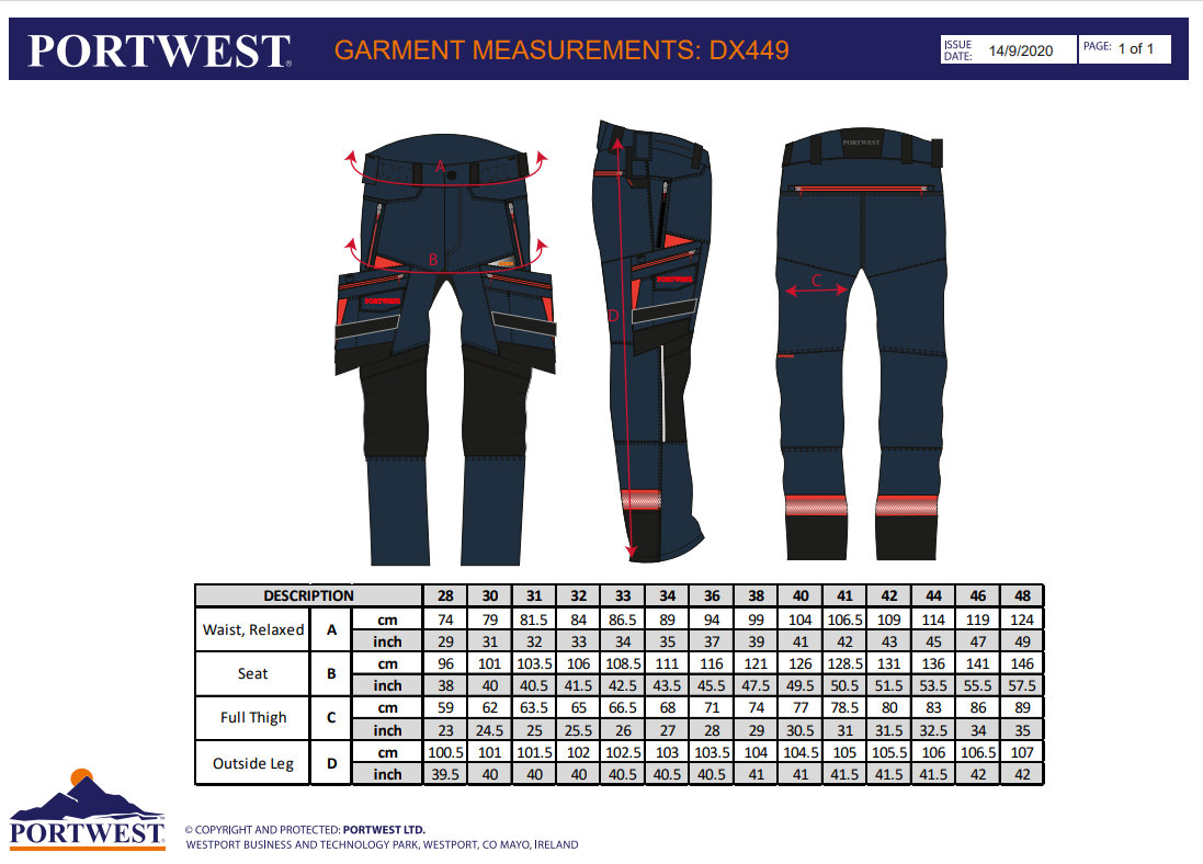 DX4 pracovné nohavice sú ergonomicky tvarované a využívajú cielené umiestnenie dynamických 4X strečových látok, aby pri práci poskytli maximálny rozsah pohybu. Nohavice majú vysoko položený zadný pás s bočnou elastikou, ktorá zaisťuje ochranu vo všetkých pracovných pozíciách. Predohnuté nastaviteľné vrecká na kolená s horným plnením, veľkoryso dimenzované predné vrecká a multifunkčné vrecká na stehná ponúkajú bezpečné uloženie. Trojité prešívanie pre maximálnu odolnosť. Materiál: Vonkajšia látka: 93% polyester, 7% elastan; Kontrastná látka: 65% Polyester, 35% Bavlna Ripstop Weft Stretch