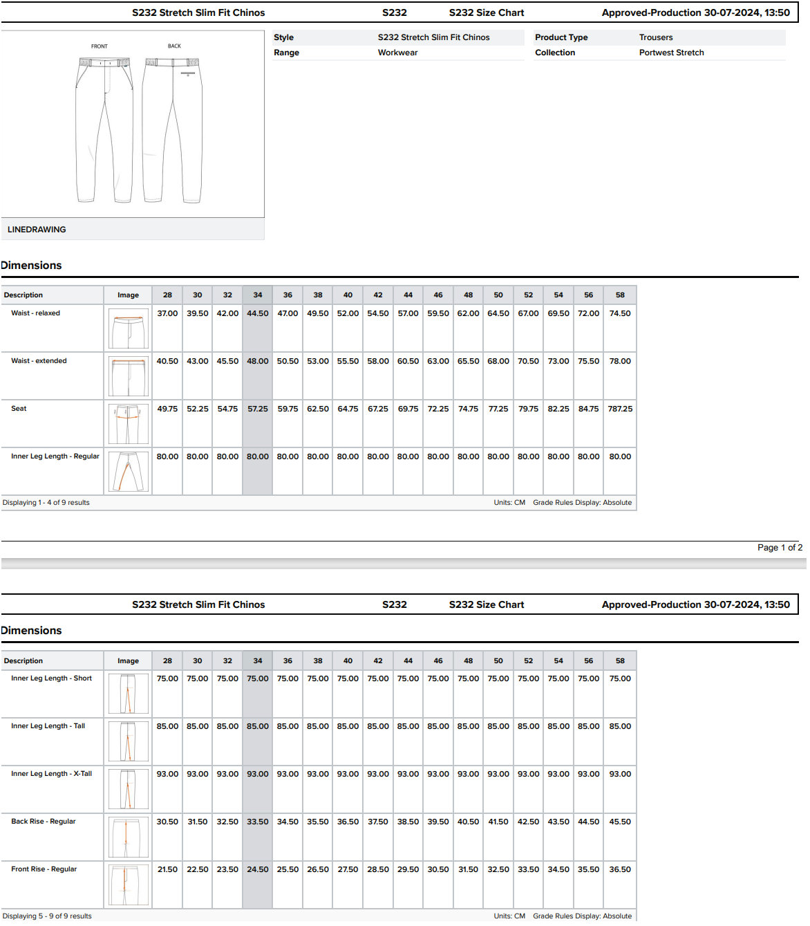 Portwest S232 Slim Chino Strečové pracovné nohavice