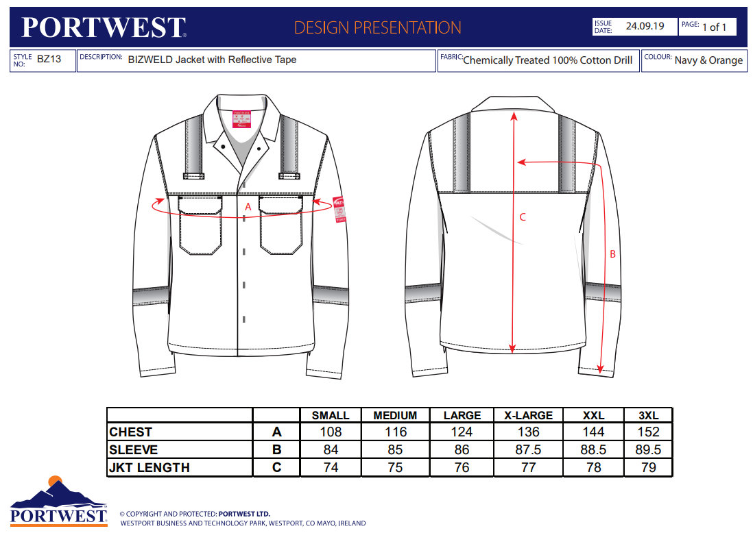 Bunda Bizweld Iona ponúka vynikajúci komfort, ochranu a funkčnosť. K dizajnovým prvkom patrí skrytý predný uzáver, dve vrecká na hrudi s chlopňami, skryté vrecko na mobilný telefón a reflexná páska odolná voči ohňu na ramenách a rukávoch pre dokonalú viditeľnosť. Materiál: Vonkajšia látka: 100% Bavlna, Ohňu vzdorná úprava