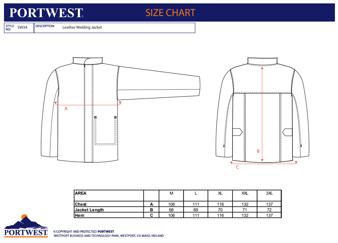 Táto vysoko kvalitná zváracia bunda je vyrobená z delenej hovädzej usne a prešitá para-aramidovým závitom. Ponúka zvýšenú ochranu trupu pri zváraní a je navrhnutá tak, aby vydržala v najťažších podmienkach. Materiál: Vonkajšia látka: Koža štiepaná z hovädzej kože, hrúbka 1,3 mm- - Vyrobené z hovädzej kože pre prvotriednu povrchovú úpravu