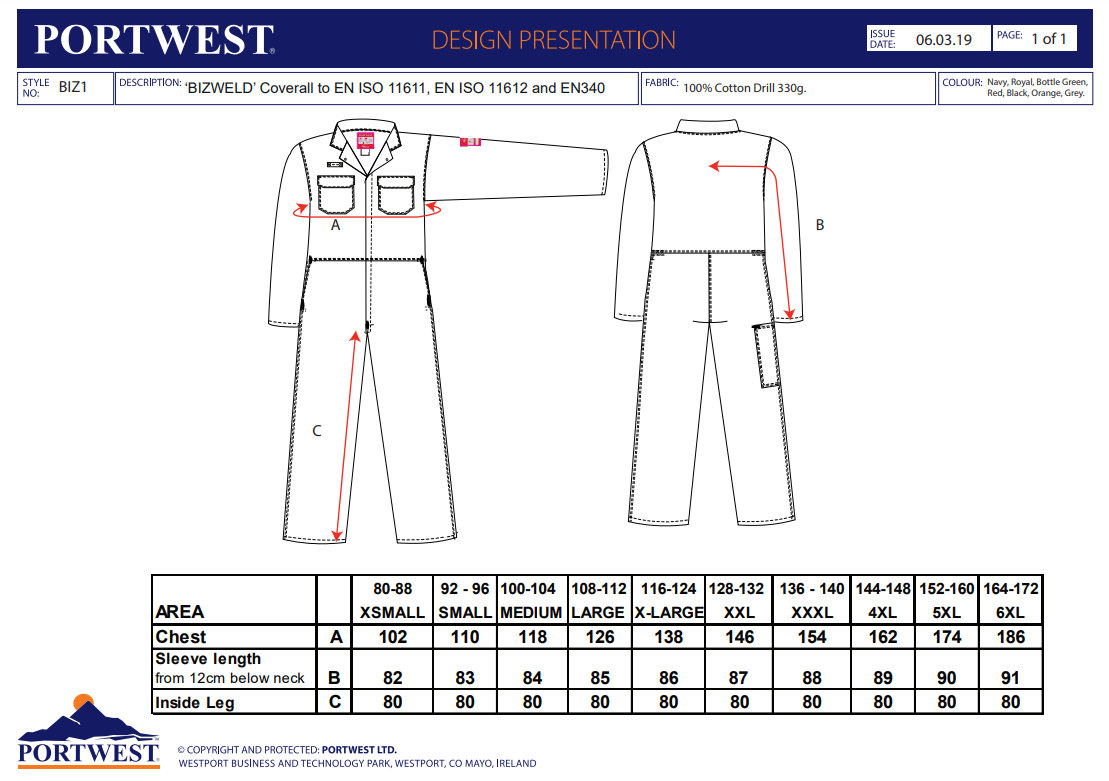 Portwest BIZ1 Bizweld Nehorľavá kombinéza