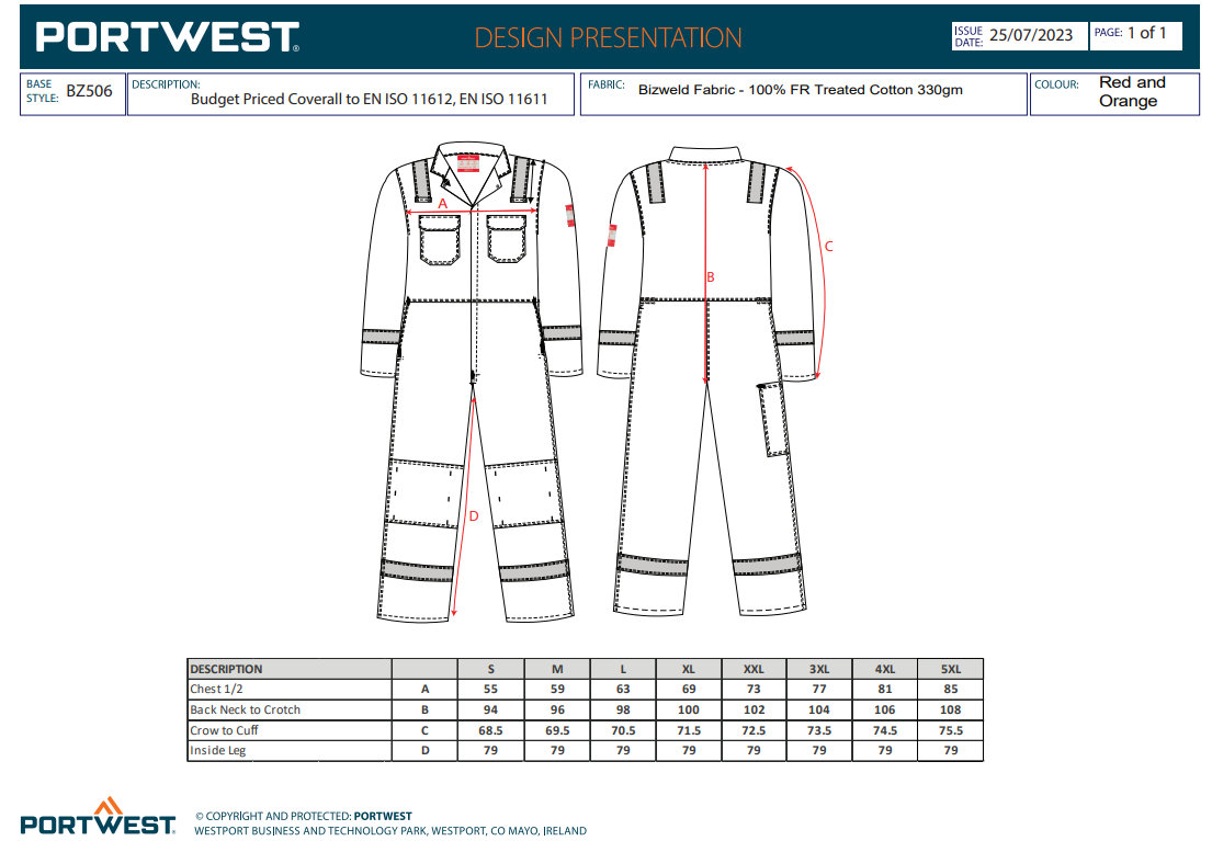 Klasická kombinéza Bizweld ponúka užívateľovi viditeľnú ochranu. Medzi dômyselné dizajnové prvky patrí ohňovzdorná reflexná páska na ramenách, rukávoch a nohách, možnosť vloženia chráničov kolien v prípade potreby, dostatok úložného priestoru a vrecko na meter. Materiál: Vonkajšia látka: 100% Bavlna, Ohňu vzdorná úprava