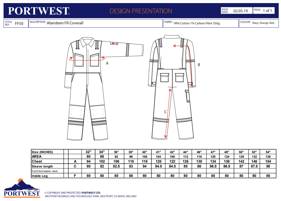 Portwest FF50 Aberdeen Nehorľavá kombinéza