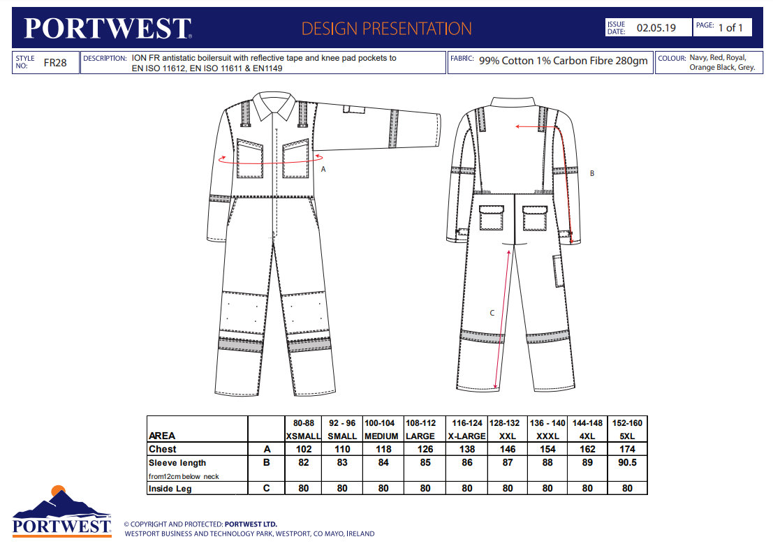 Ľahká a vysoko inovatívna nehorľavá kombinéza FR28 je vyrobená z tkaniny Bizflame™ Work (280g) s pridanými antistatickými vlastnosťami. Multinormová ochrana pre náročné podmienky. Certifikovaná podľa medzinárodných noriem, vrátane EN ISO 11612 a EN ISO 11611 Trieda 2 pre ochranu pri zváraní. Kombinéza ponúka ochranu proti sálavému, konvekčnému a kontaktnému teplu. Má trojité šitie a mosadzné zipsy pre extra pevnosť a trvanlivosť. Praktické funkcie zahŕňajú vrecko na meter, dve zadné vrecká, funkčný chrbát pre voľnosť pohybu, nastaviteľné manžety na suchý zips, dve vrecká na kolenačky, bočné prístupové otvory a vrecko na rukáve. Pre jednoduché použitie má dvojcestný zips. FR28 Bizflame™ kombinéza predstavuje optimálne spojenie komfortu, funkčnosti a špičkovej certifikovanej ochrany. Je ideálna pre profesionálov, ktorí sa nespoliehajú na kompromisy, keď ide o bezpečnosť. Ideálne pre: zváračov, brusičov a pracovníkov v prostrediach s rizikom požiaru a výbuchu, kde je potrebná ľahká, pohodlná a spoľahlivá ochrana.