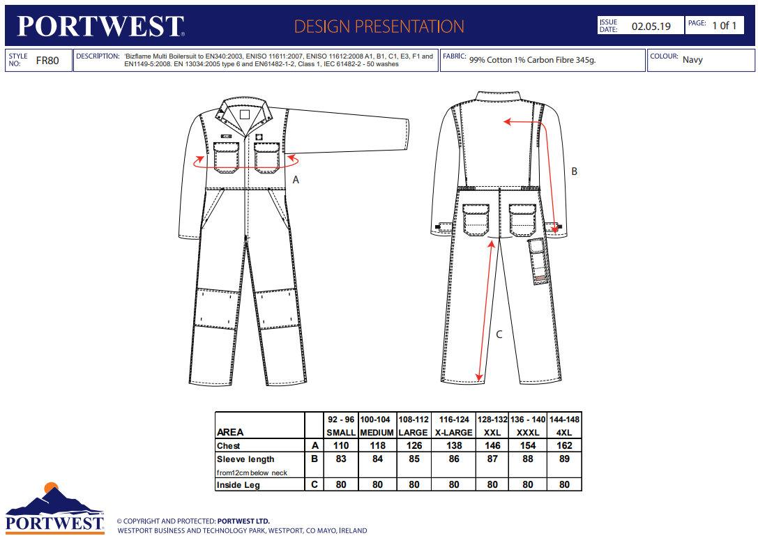 Táto kombinéza je ideálna pre požiadavky petrochemického priemyslu. Vysoko technická tkanina poskytuje ochranu proti plameňom, teplu, striekajúcemu železu, chemikáliám, elektrickému oblúku a antistatickú ochranu. Vysoký golier a klopy s cvočkami na každom vrecku poskytujú maximálnu ochranu. Materiál: Vonkajšia látka: 99% Bavlna, 1% Uhlíkové vlákno