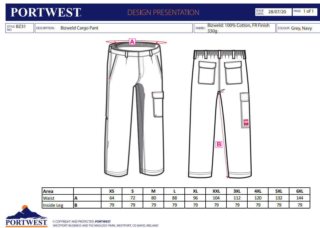 Portwest BZ31 Bizweld FR Cargo Nehorľavé nohavice