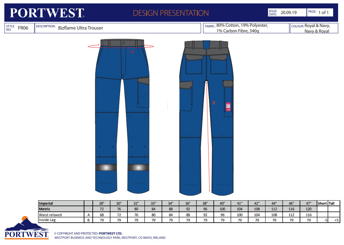 - Portwest FR06 – Bizflame Ultra Two Tone antistatické nohavice s ochranou proti plameňu.