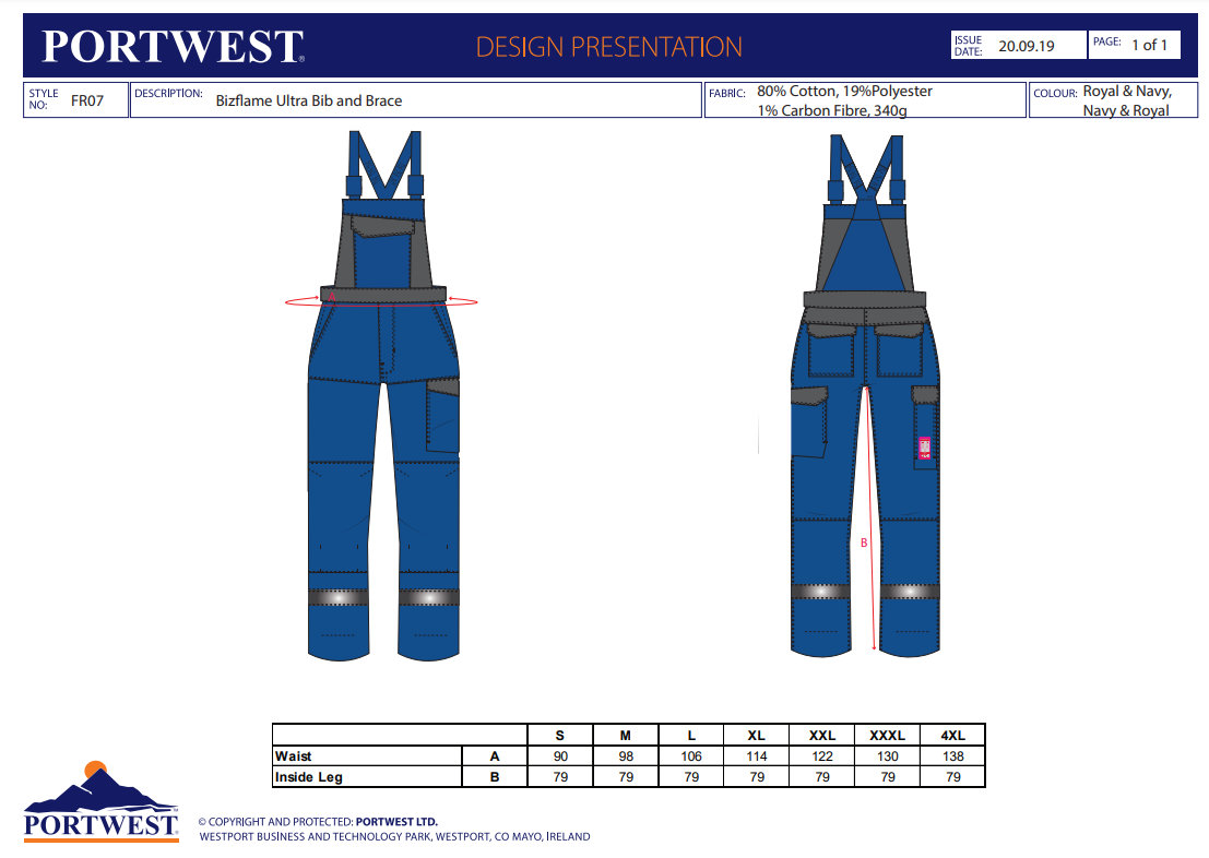 Portwest FR07 Bizflame Ultra Nehorľavé nohavice na traky