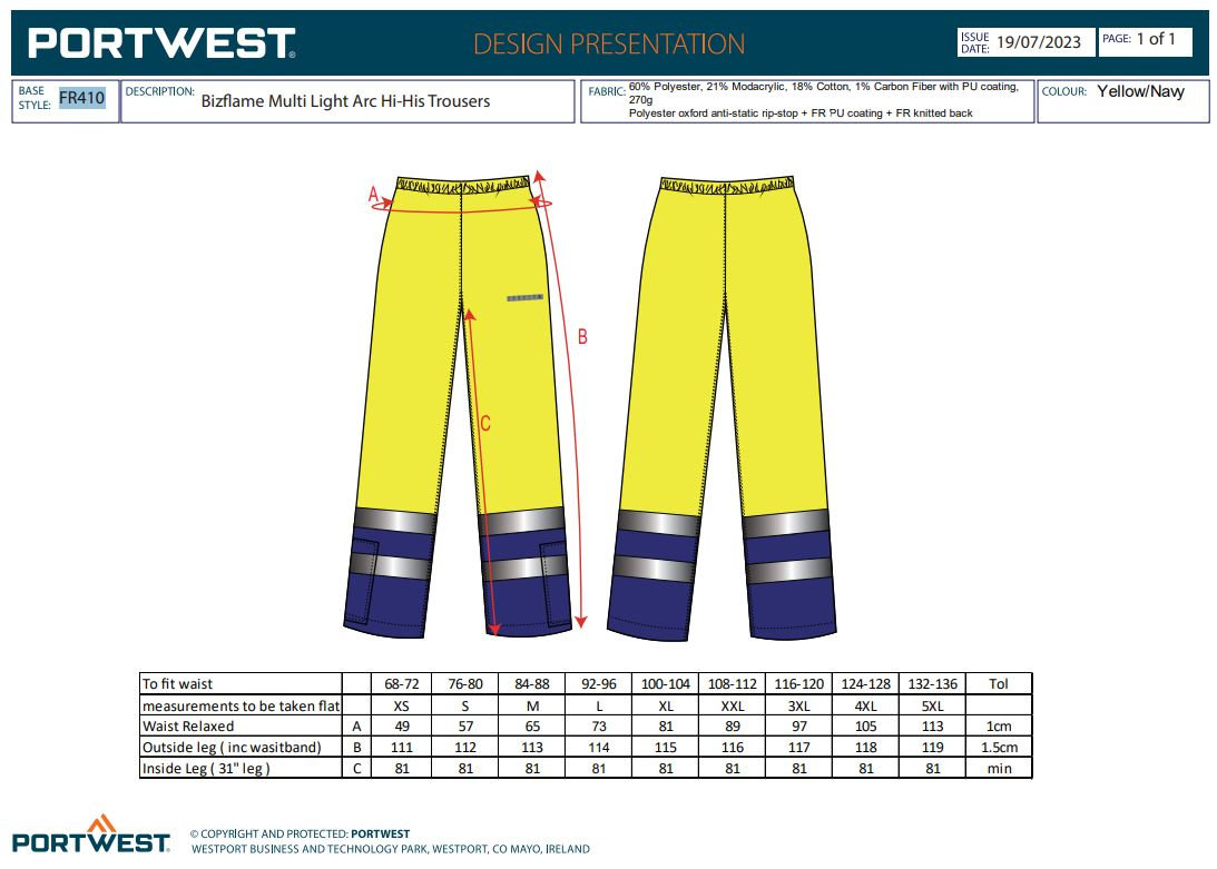 Portwest FR410 Bizflame Rain+ Hi-Vis Multi-Norm Arc FR Nehorľavé nohavice