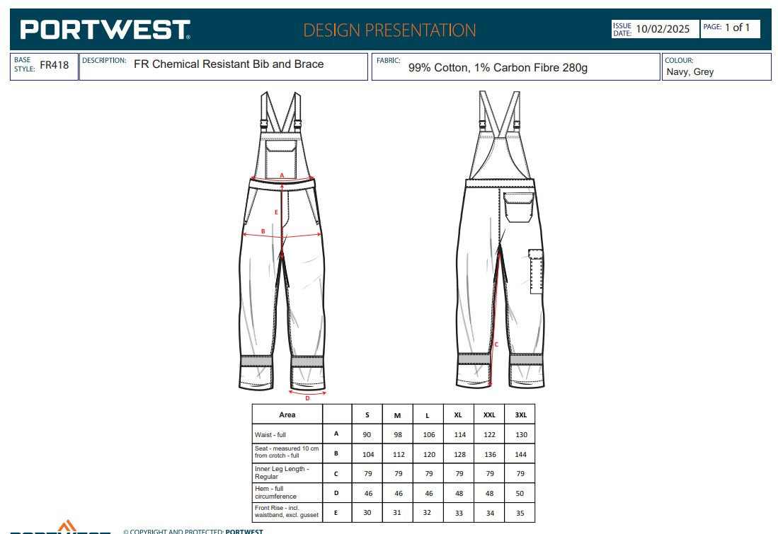 Ochranné nohavice s trakmi navrhnuté na spoľahlivú ochranu pred tepelnými a antistatickými rizikami. Vyrobené z certifikovanej tkaniny Bizflame™ Work, ktorá zaisťuje odolnosť voči plameňu, elektrostatickú ochranu a dlhú životnosť vďaka trojitým švom a kvalitným kovovým komponentom. Vhodné pre prácu v náročných podmienkach, najmä pri zváraní alebo v prostredí s rizikom elektrického oblúka. Funkčnosť a komfort pre každodennú prácu - nohavice s trakmi sú navrhnuté s dôrazom na praktickosť a pohodlie. FR418 Bizflame Work+ FR Bib and Brace nohavice sú ideálnou voľbou pre profesionálov v odvetviach ako zváranie, petrochemický priemysel, energetika a iné, kde je nevyhnutná spoľahlivá ochrana proti plameňom, teplu, elektrickému oblúku a statickej elektrine, spolu s pohodlím a trvanlivosťou.- Kľúčové vlastnosti: