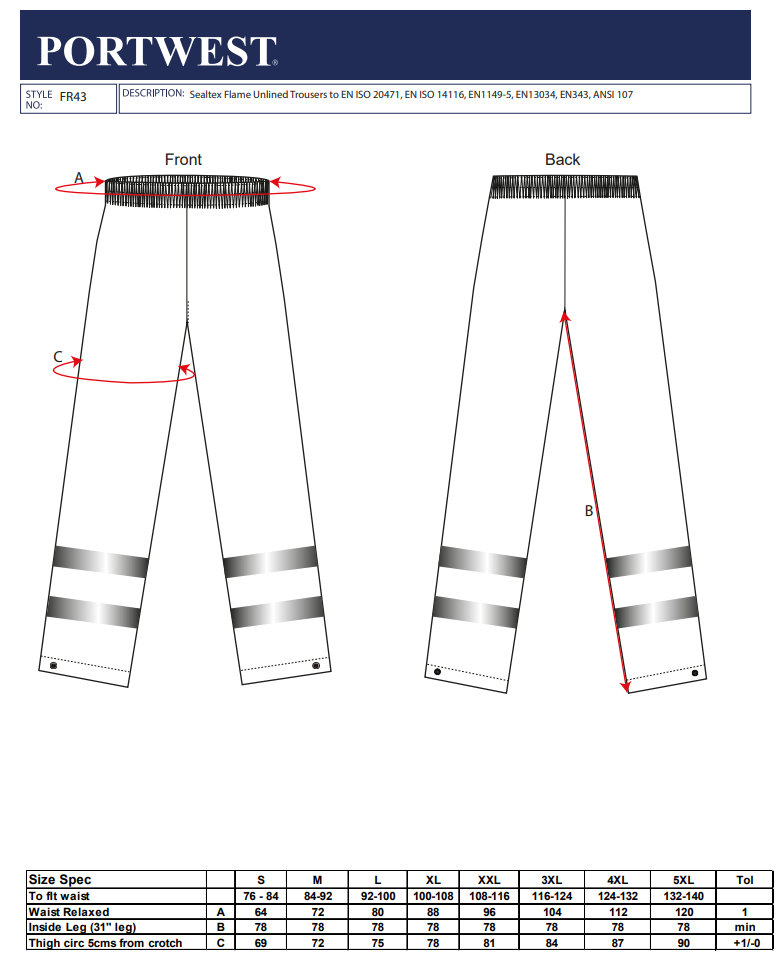 Portwest FR43 Sealtex Flame Hi-Vis Nehorľavé nohavice