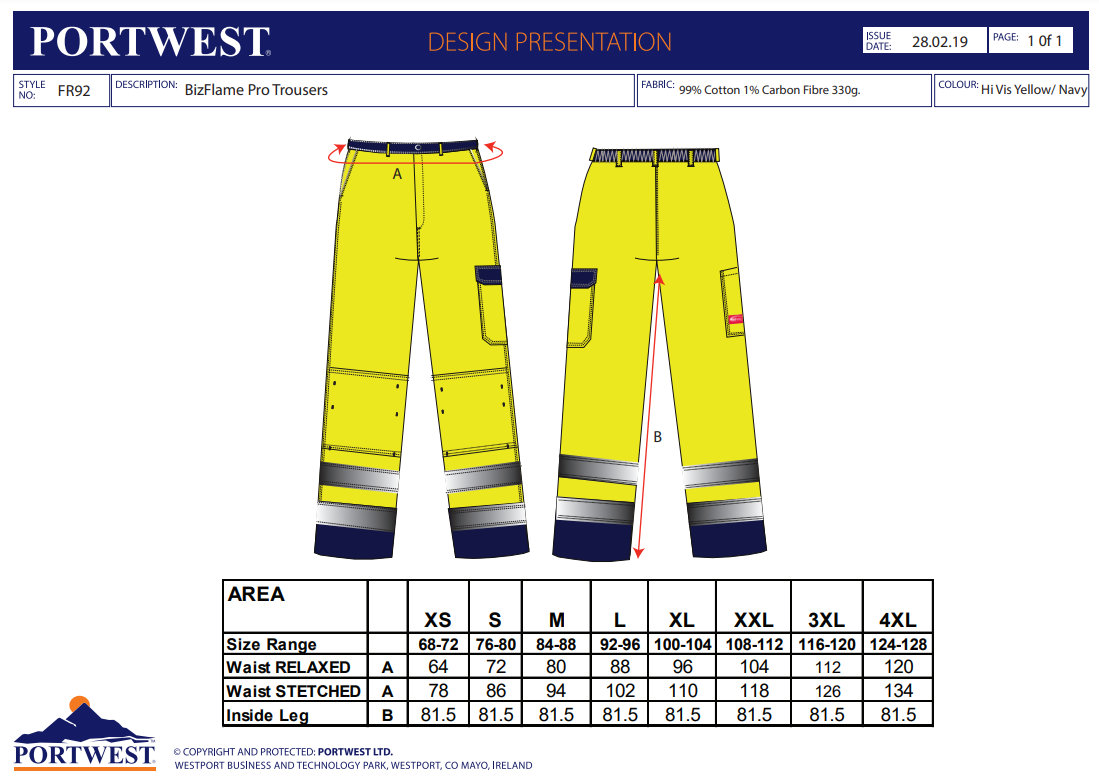 Portwest FR92 Bizflame Pro Nehorľavé reflexné nohavice
