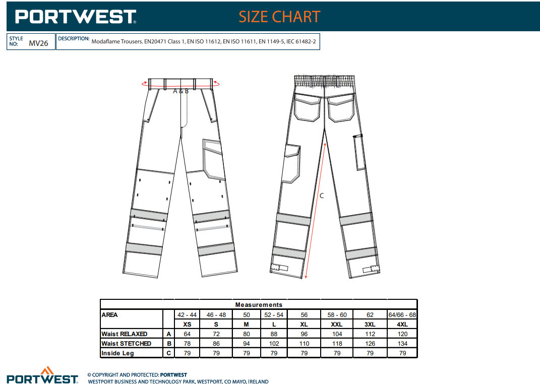 Portwest MV26 Hi-Vis Modaflame Nehorľavé nohavice