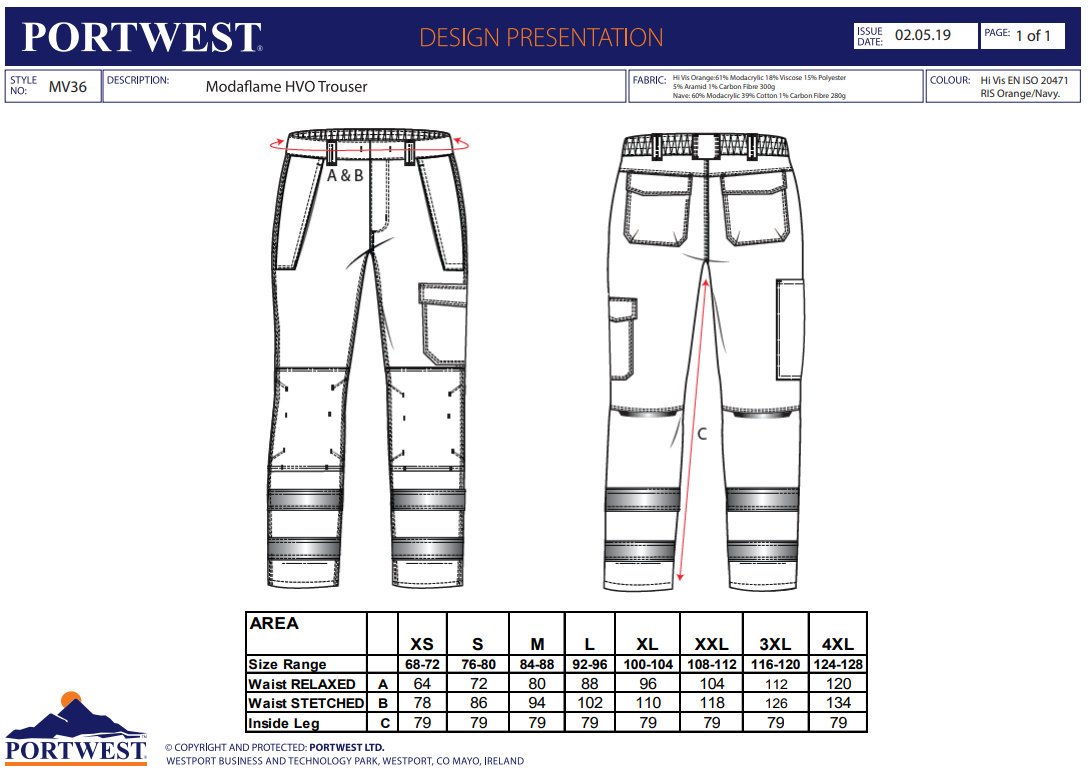 Portwest MV36 Modaflame RIS Nehorľavé nohavice