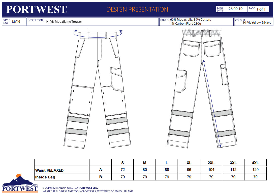 Portwest MV46 Hi-Vis Modaflame Nehorľavé reflexné nohavice