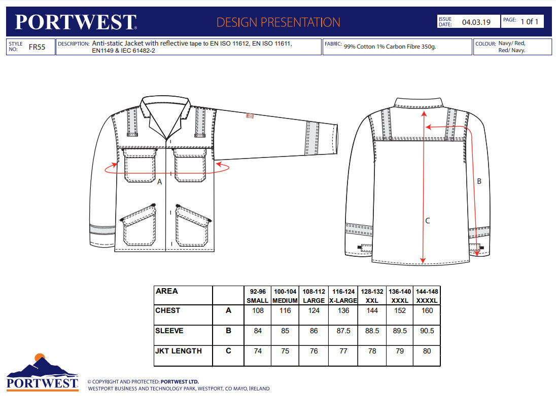 Táto bunda je skonštruovaná s reflexnou páskou s vysokou viditeľnosťou, ktorá je dvakrát prešitá na zvýšenie odolnosti. Medzi vlastnosti patria trikrát prešité švy, pásy s vysokou viditeľnosťou na ramenách, skrytý mosadzný zips, dve predné náprsné vrecká s chlopňou a zapínaním na cvočky. Nastaviteľný otvor rukáva. Materiál: Vonkajšia látka: 99% Bavlna, 1% Uhlíkové vlákno- - Radiačné; konvenčné a kontaktné teplo