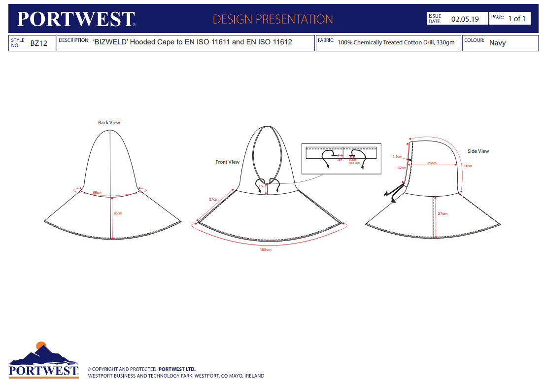 Navrhnutá pre maximálnu ochranu a komfort užívateľa. Nastavenie pomocou šnúrky. Potrebné použiť s vhodným overalom alebo s kombináciou vetrovky a nohavíc. Materiál: Vonkajšia látka: 100% Bavlna, Ohňu vzdorná úprava