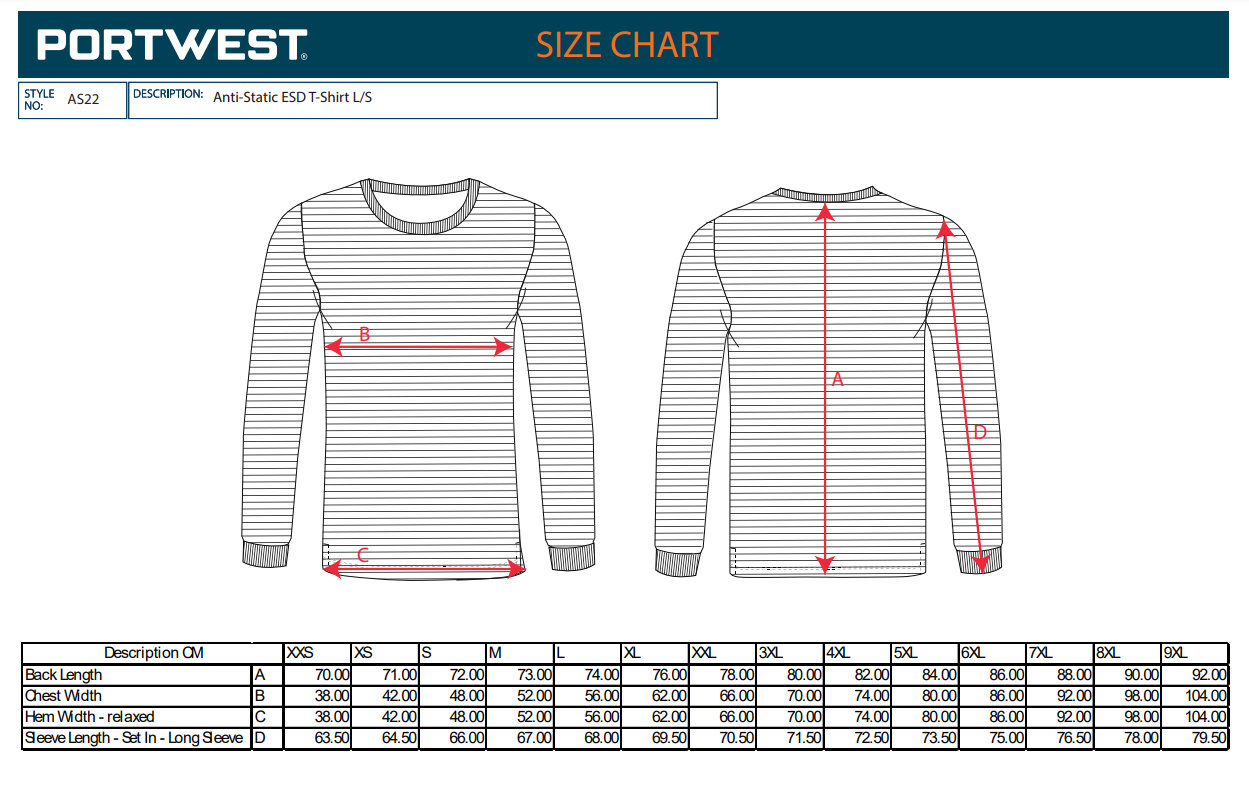 Portwest AS22 Antistatické ESD tričko s dlhým rukávom