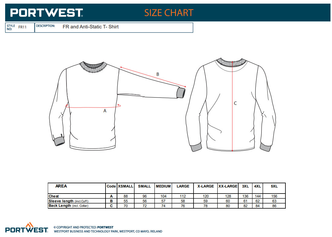 Portwest FR11 – Modaflame™ nehorľavé antistatické tričko s dlhým rukávom - maximálna ochrana a komfort. Kvalitné tričko s dlhým rukávom FR11 je vyrobené z prvotriedneho, inherentne nehorľavého a antistatického úpletu Modaflame™ Knit. Zloženie materiálu (60% modakryl, 39% bavlna, 1% karbónové vlákno) zaručuje trvalú ochranu bez chemickej úpravy. Je mäkké, odolné a poskytuje vynikajúci komfort vďaka vysokému podielu bavlny. Chráni pred sálavým, konvekčným a kontaktným teplom a statickou elektrinou. Nehorľavé rebrované manžety zvyšujú bezpečnosť. Materiál má vynikajúcu stálofarebnosť a poskytuje ochranu proti UV žiareniu s faktorom 40 UPF. Praktický externý štítok noriem umožňuje rýchlu identifikáciu úrovne ochrany. Dostupné vo veľkostiach XS až 5XL. Tričko FR11 Modaflame™ kombinuje ľahkosť, priedušnosť a vysokú úroveň ochrany, čím ho radí medzi ideálne riešenia pre každodenné používanie v nebezpečných podmienkach. Ideálne pre: elektrikárov, pracovníkov v petrochemickom priemysle, zváračov, lakovniach a všade tam, kde je potrebná spoľahlivá a komfortná ochrana proti plameňom a statickej elektrine.- Kľúčové vlastnosti: