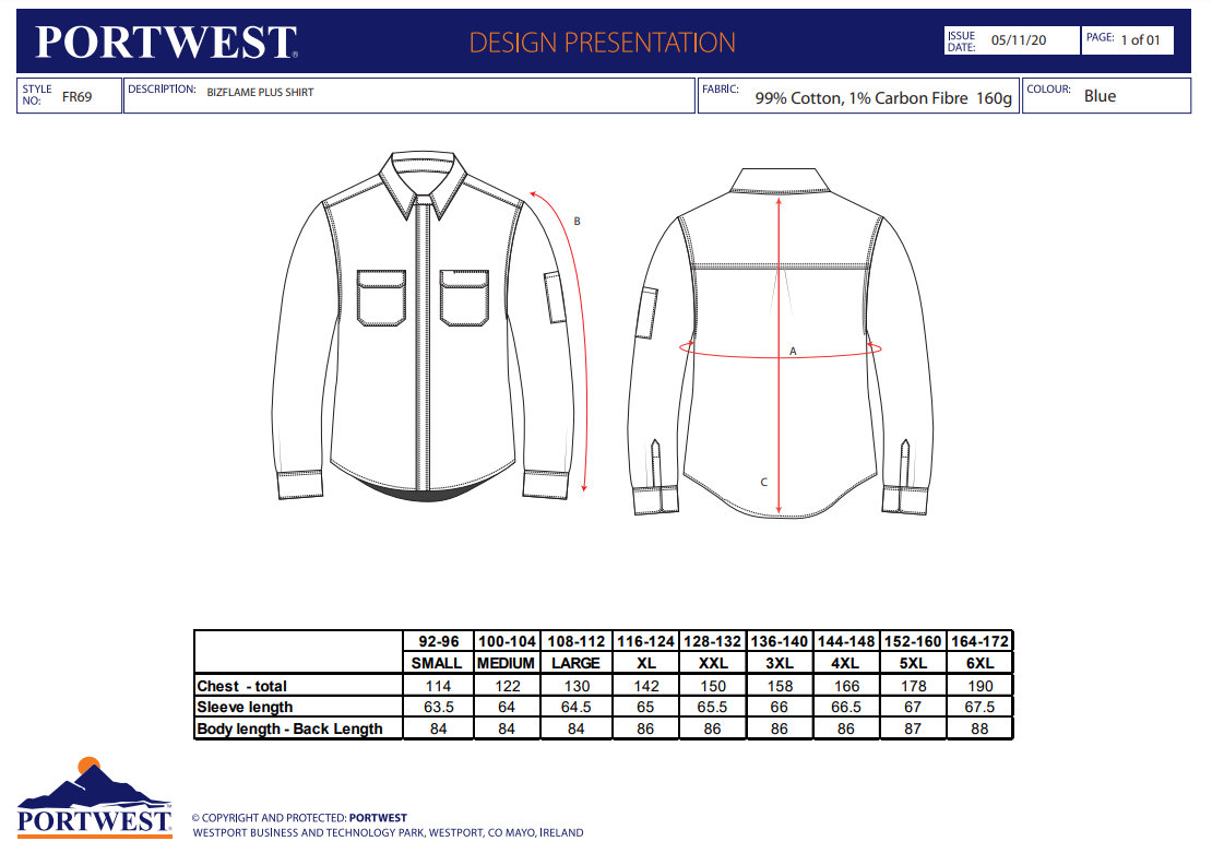 Portwest FR69 Bizflame Plus Ohňuvzdorná antistatická košeľa