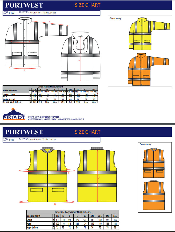 Vysoko inovatívna a funkčná bunda, ktorá ponúka všetky funkcie a potrebné štandardy nášho Hi-Vis radu, S468 je skutočným lídrom na trhu. Nepremokavá vrstva tohto odevu poskytuje ochranu pred vlhkým počasím, keď sa nosí samostatne. Súčasťou tejto bundy je aj vesta v štýle S469.- - Nepremokavé s lepenými švami predchádza premočeniu