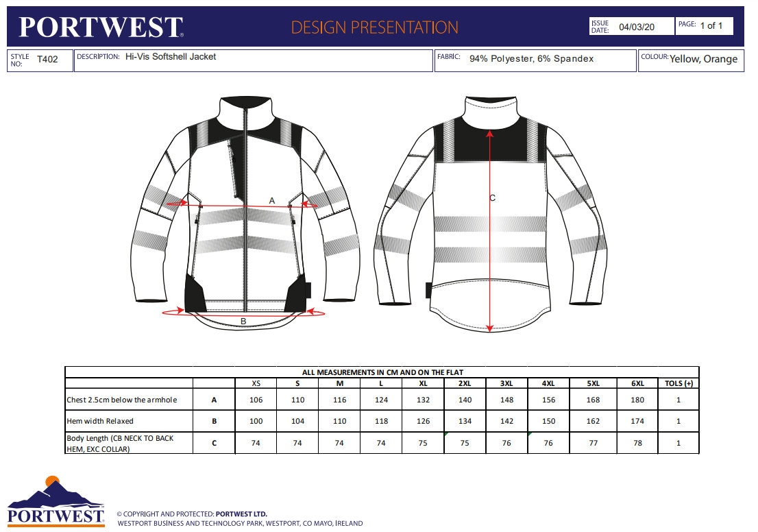 EN ISO 20471 Class 2 (: SIZE XS);EN ISO 20471 Class 3 (: SIZE S UPWARDS);RIS 3279 TOM Issue 2 (Orange Only);ANSI/ISEA 107 TYPE R CLASS 2 (: SIZE XS);ANSI/ISEA 107 TYPE R CLASS 3 (: SIZE S UPWARDS);Waterproof / Breathability - (WP 8