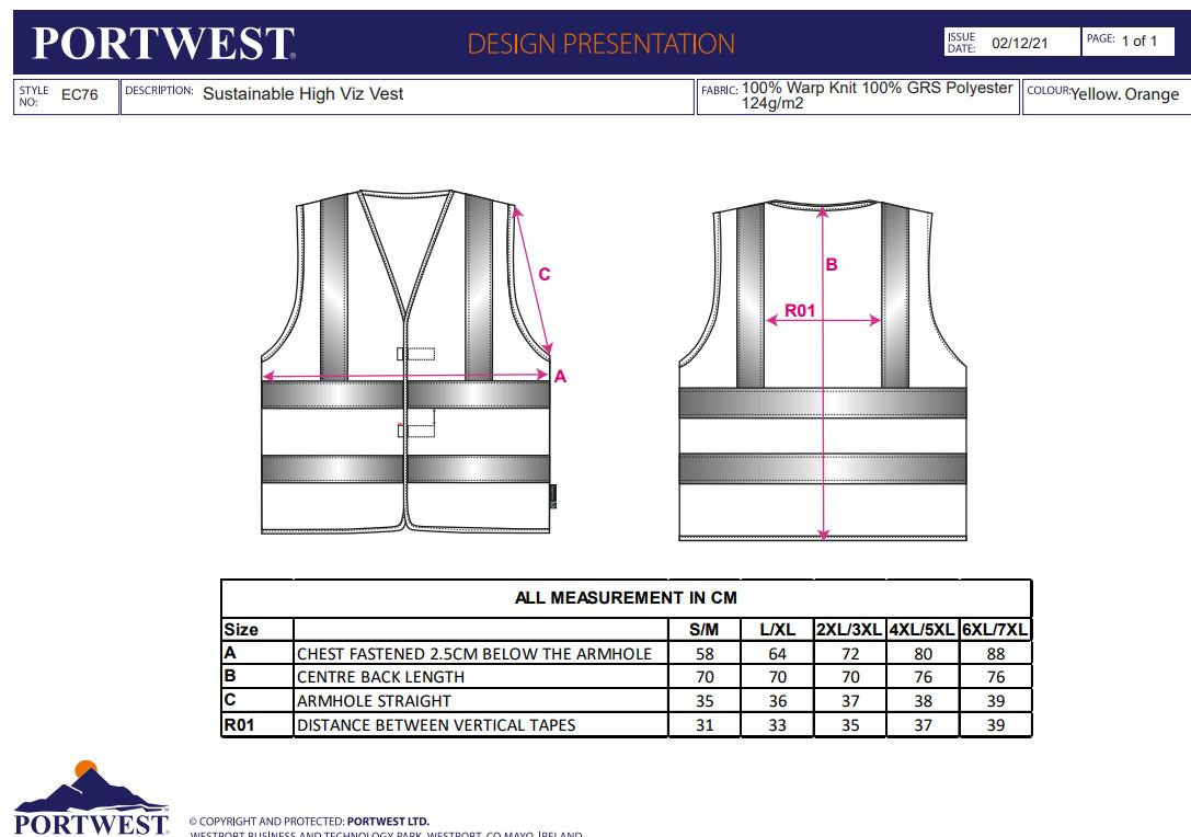 Portwest EC76 Eco Hi-Vis Reflexná vesta 10ks