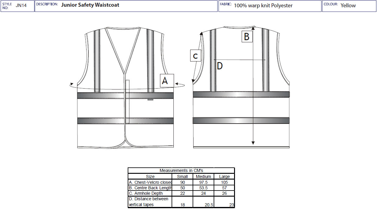 Vznikla na základe úspechu reflexnej vesty pre dospelých C470. Jednoduché predné zapínanie umožňuje deťom ju obliecť a vyzliecť. Ideálne pre školské výlety, jazdu na bicykli a všade tam, kde deti potrebujú byť videné. Materiál: Vonkajšia látka: 100% osnovne pletený polyester- - Ľahké a komfortné